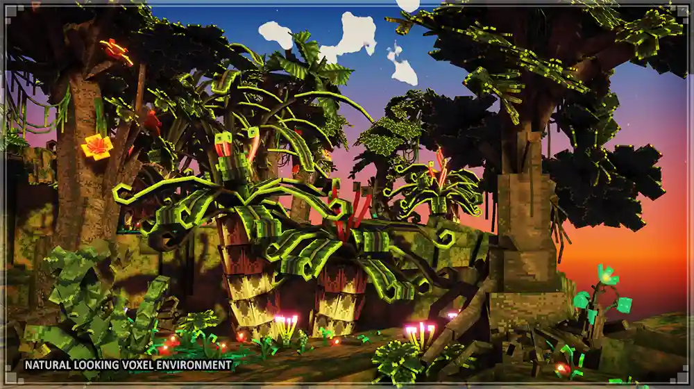 Despite the fact that we work with voxels our environment designs are beautifully modeled, highly detailed and natural looking. Every asset is poly-count optimized so performance won’t suffer even with such a rich environment in place.